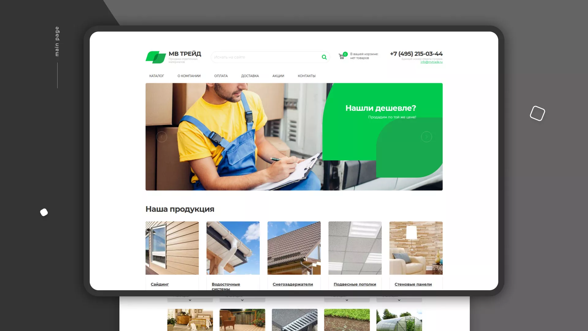 Компания «МВ Трейд» осуществляет продажу сайдинга и отделочных материалов через интернет со своих складов в Спас-Клепиках. За 17 лет компания зарекомендовала себя надежным поставщиком. Товары реализуются как оптом, так и в розницу.