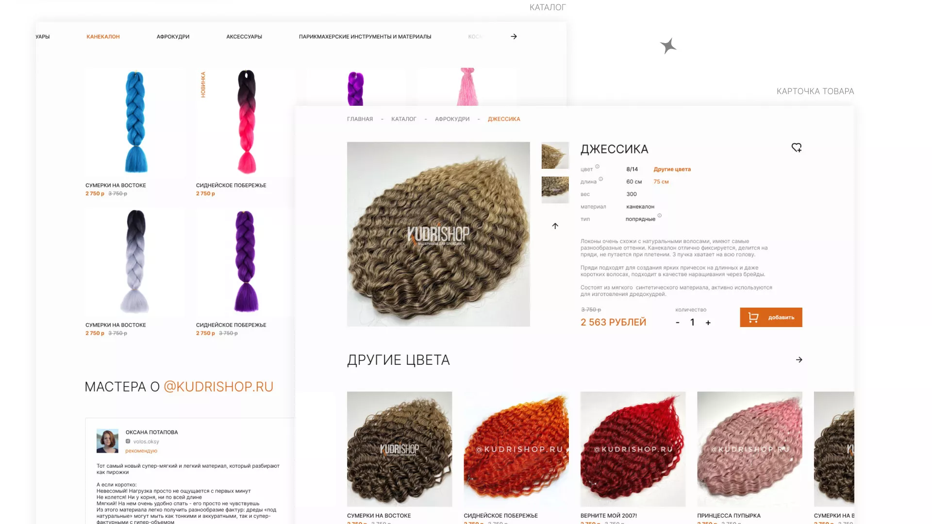 Создание интернет-магазина по продаже афрокудрей и других материалов для брендинга в Спас-Клепиках. Целевая аудитория — молодые и современные девушки, желающие разнообразить свой образ.
